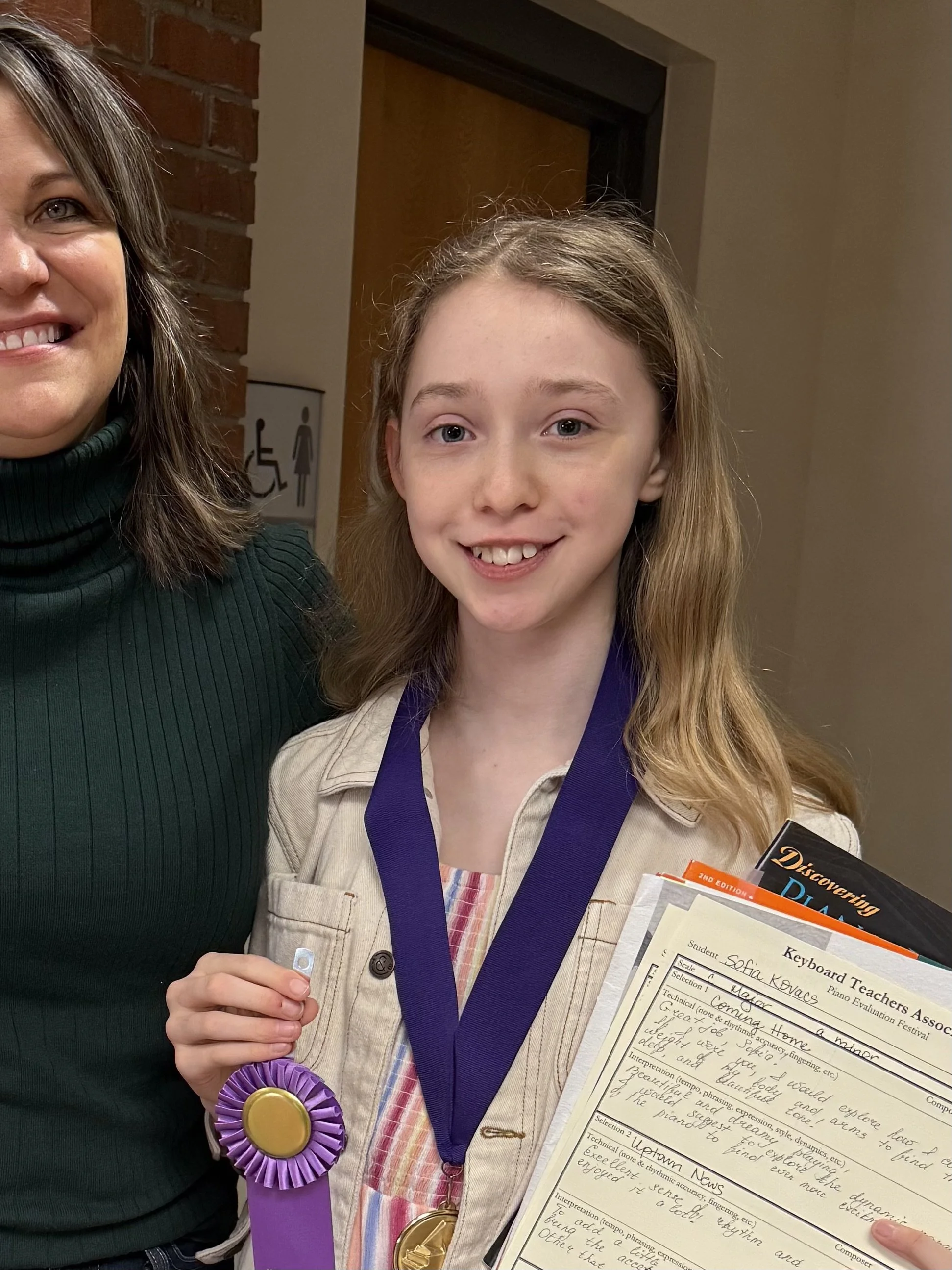 This is a favorite adjudicated experience within the studio. While it is a little more formal, as you prepare 2 pieces and perform them from memory, a wonderful panel of helpful adjudicators will provide feedback and constructive comments. You will receive a ribbon and points based on your final rating, and when you accumulate 10 points (2 Superiors) you receive a medal. $25 to participate.